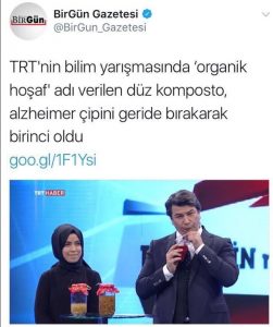 “TRT’nin bilim yarışmasında” diye bahsettikleri; TRT Haber ekranlarında yayınlanan “Bir Fikrin Mi Var” isimli girişimcilik yarışmasıdır aslında.